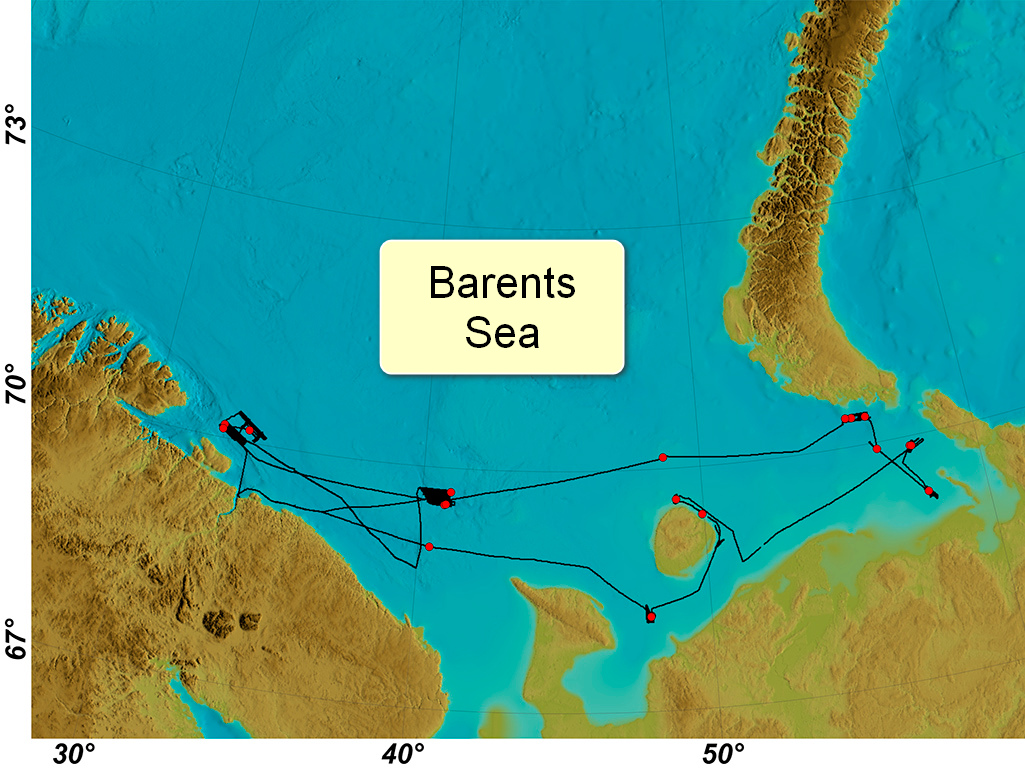 The vessel's route during the 60th voyage of R/V Akademik Nikolay Strakhov.
